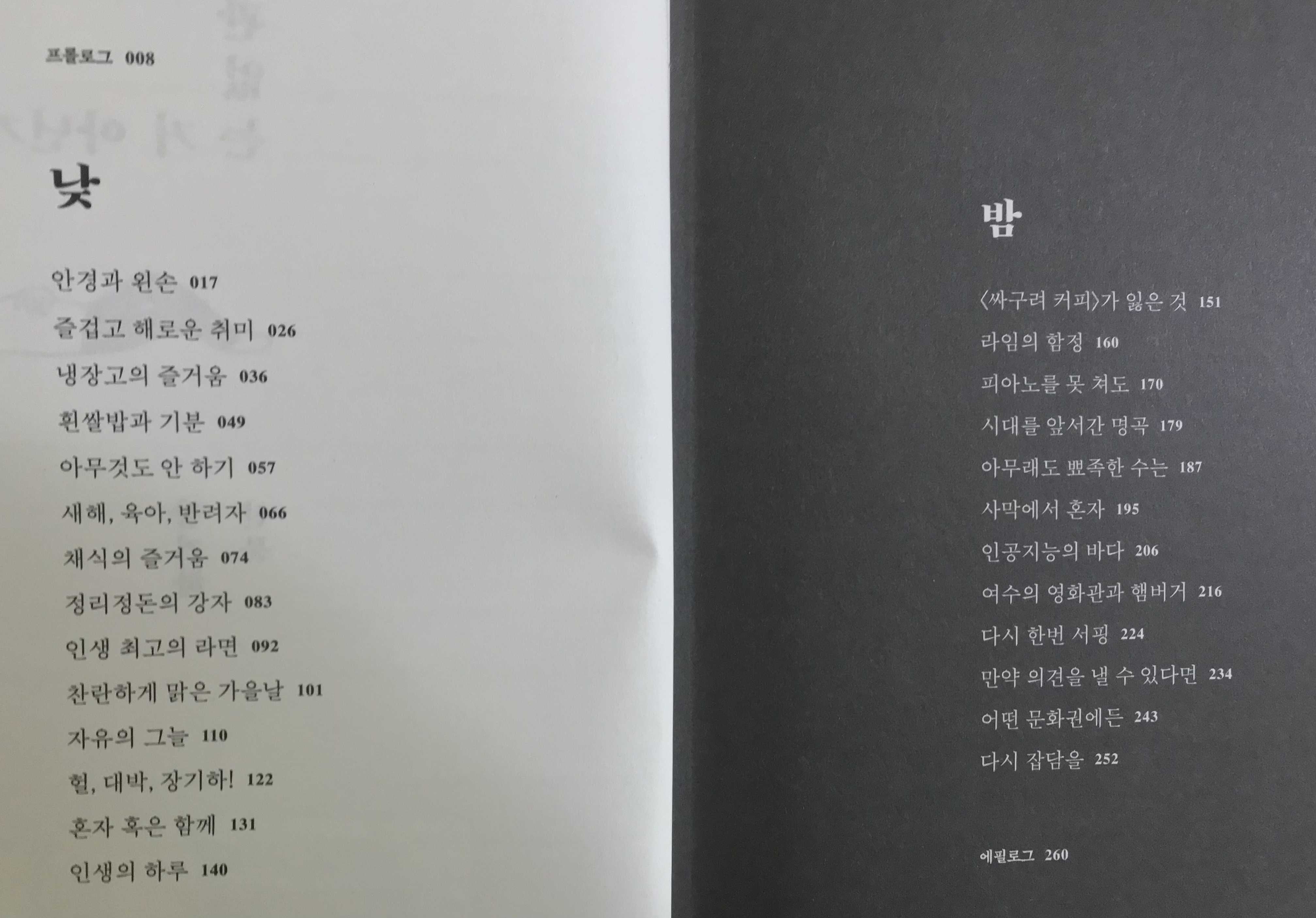 ์ ๋ฎ๊ณผ ๋ฐค์ด๋ผ๋ ํฐ ๋ชฉ์ฐจ ์๋ ๊ทธ๊ฐ ์ด ์งง์ ์ฐ๋ฌธ๋ค์ ์น๊ธฐ์ข